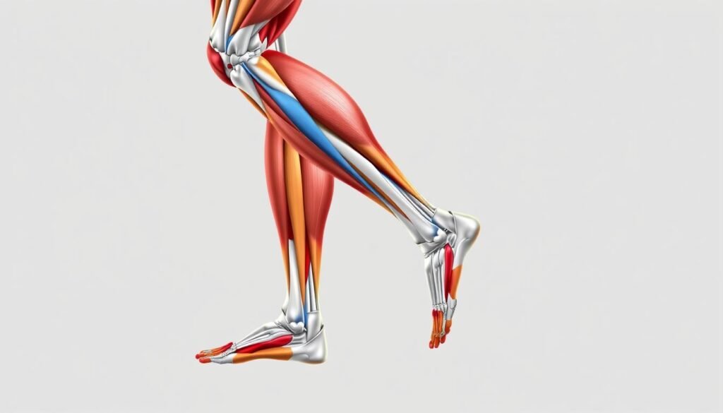 It’s crucial to know the main muscle groups in leg workouts to maximize your training. Working these muscles improves strength, stability, and endurance. Let’s look at the important ones: quadriceps, hamstrings, and calves.